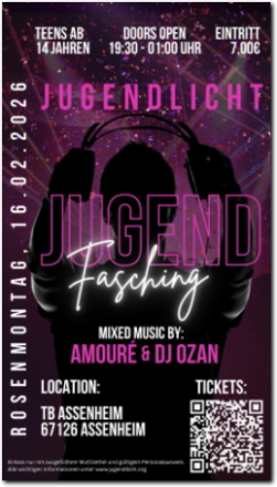 Dann kommt an Rosenmontag zum 1. Jugendlicht Jugendfasching und feiert mit uns,